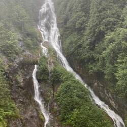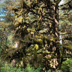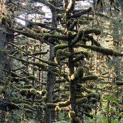 The headland is now a park with trails through the woods along the coastline or around the lake which lies at the centre of the headland. We took the route down by the lake and followed that to the coast, then had to double back a short way to the path which climbed to the headland summit and derelict buildings. We then walked back along the coast path towards the pick up point for the shuttle bus, (here in Alaska where we have stopped it has been yellow school buses, the towns we have stopped at are too small for a bus service or a separate coach company). Apart from the views the main observation was a pair of eagles sitting on the cliffs as we walked back. Didn’t see any bears today, but at one of the campsites in the park that we crossed there was a sign saying to be careful with food an food waste as a bear had been there last Friday. Although lucky again with the weather as bright and sunny, the headland was quite damp in places despite there being no recent rain which learnt when we stopped to talk to a couple of sets of local walkers who were intrigued about all the strangers in red jackets wandering around. A visiting cruise ship is rather a novelty here and all the locals had all seemed to be aware that a strange ship was in port. Also in port ( according to our bus driver) are the fishing boats used in the “Deadliest Catch” reality fishing tv series. There was an option to drop off in “downtown” on the way back, but the tour notes had been updated to say that rage town museum ($5 entry fee cash only) was closed and as the only other downtown attraction was the local McDonalds ( pointed out to us by our bus driver on the way there) we just returned to the ship for a lazy afternoon of reading. Going back to the park being damp, the fir trees had various mosses growing all over the branches, have included a couple of pictures.Les mer