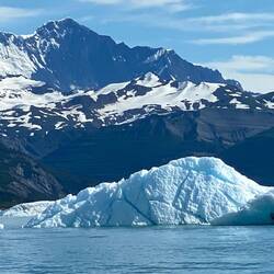 Apparently what we see today, a large bay with 3 glaciers draining into it, has existed for less than 100 years. Originally it was a single glacier but over this time the glacier has retreated. The pilot/guide did say that this was normal activity for this type of glacier and not totally down to global warming. In the pictures the distances are deceptive, it took 10 minutes or so at high speed to get get to the edge of the ice field. After that it was much slower meandering through the various chunks of ice to get closer to the glaciers, keeping clear of the largest icebergs as apparently they can break up or flip without warning. Even so we were not able to get very close as the increasing volume and size of the ice blocks did not leave any navigable paths even for boats as small as the zodiacs we are using. We had more than our allotted hour before heading back to the ship, with one last stop to fish out a chunk of glacial ice from the sea.