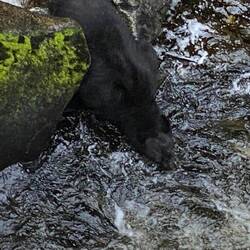 To cover Ian’s query, the video was some of the action on the bank opposite the platform where the bears would catch a salmon then move away to eat. That side seemed to have multiple tunnel/cave routes down the hillside an by the stream. It was different on the other side, there were some sheltered spots where the salmon would congregate out of the fierce flow of the mid stream. We spent a long time watching a bear by one these spots sitting on the bank, grabbing one of the waiting salmon, eating the few oily rich parts it wanted, then discarding the leftovers before reaching in for another salmon. Very adaptive to the different topography.Les mer