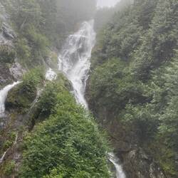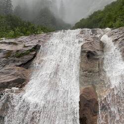 Like all these Alaskan photos, the picture never full captures the view or the experience. On the return trip in the jet boat we passed an island of harbour seals sunning themselves. Again we have been lucky with the weather, although misty and dull early on when we were at the observation centre apart from a few sprinkles of rain on one occasion visibility was good, but once we had passed the seals the rain came back more intense this time and a cloudy mist descended into the trees along the shoreline and is continuing like this as we slowly leave Wrangell.Les mer