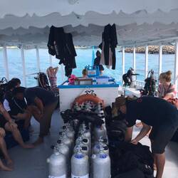 Um 8:30 sind wir wieder auf dem Boot und haben heute zwei Tauchgänge vor uns.