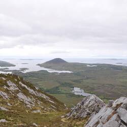 im Connemara National Park. Wunderschöne, wenn auch fast schon überlaufene Wanderung.Toller Ausblick vom Gipfel. Blick auf die Kylemore Abbey