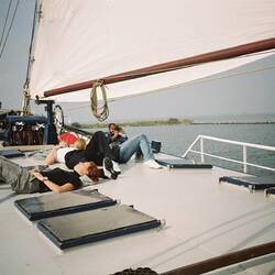 Segeln auf dem Ijsselmeer. Wir lernen Knoten und Segelbegriffe, können uns aber auch sonnen und den Trip genießen.