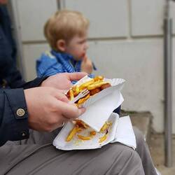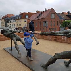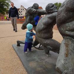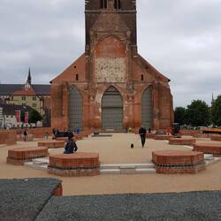 die kaputte Kirche besucht und Snacks am Rathaus