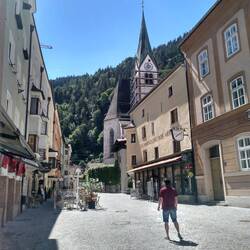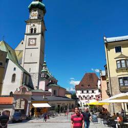 Para terminar el día, damos un paseo por Schwaz. Una localidad con una bonita calle principal en su casco antiguo que termina en la iglesia María Himmelfarht donde está también el parque de laLue lisää