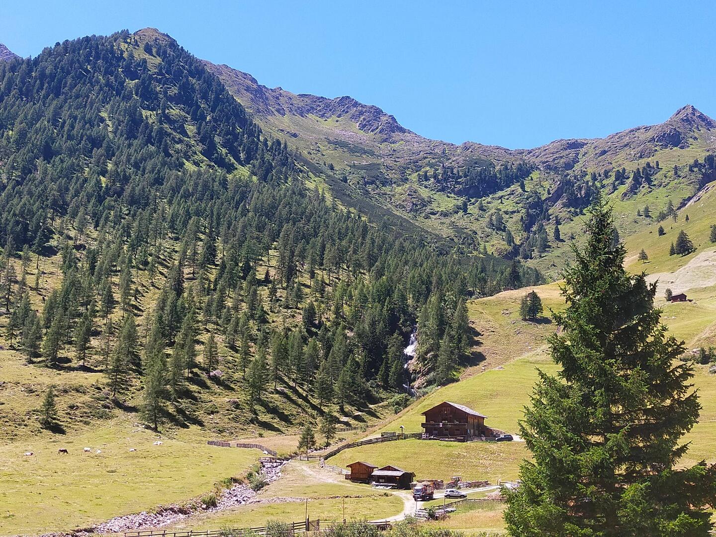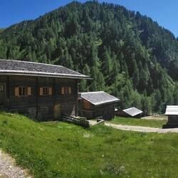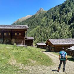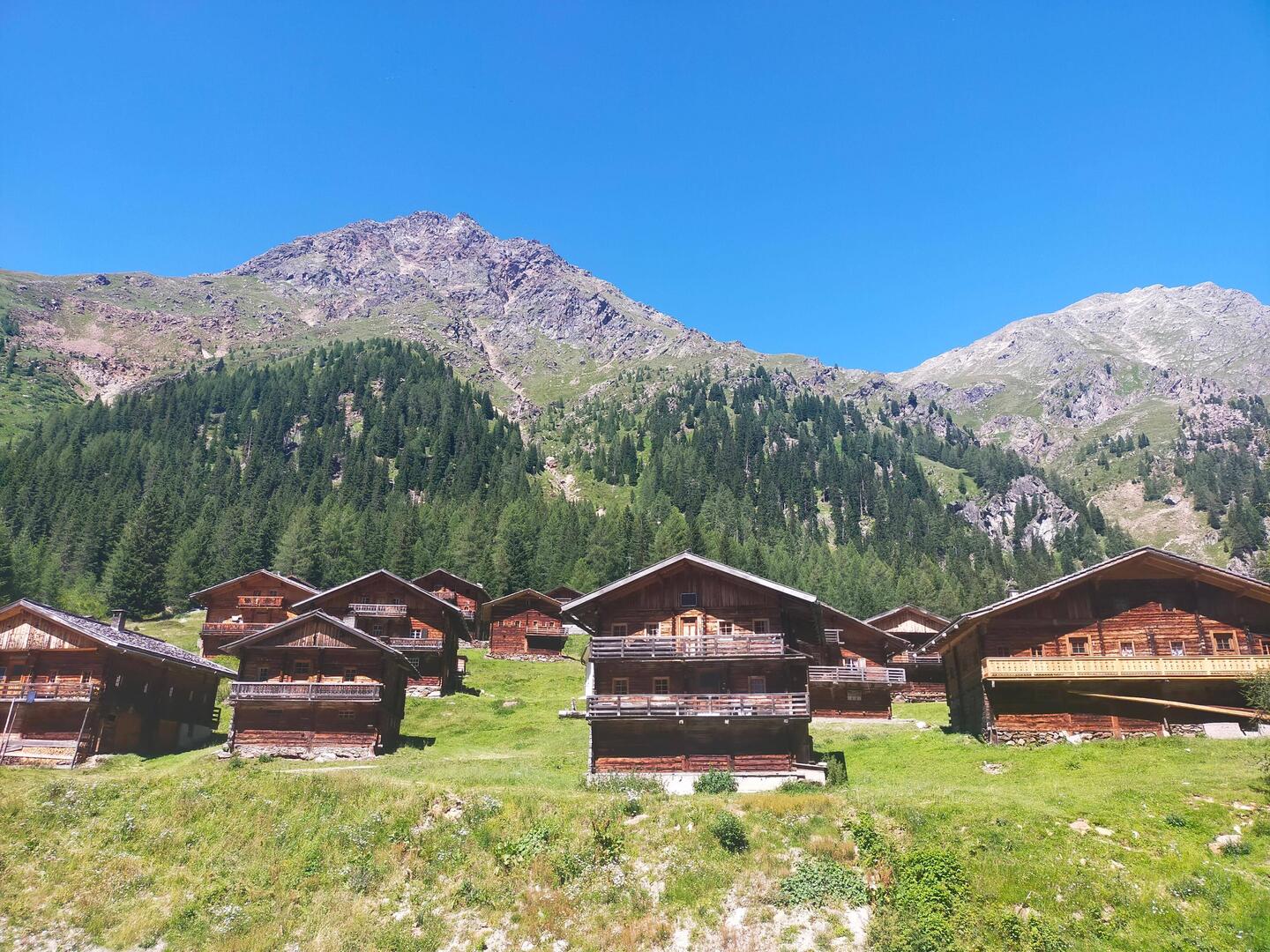 Hacemos una pequeña ruta (45 min) para llegar a Oberstalleralm, Una aldea de casas de madera en medio de la montaña. Un típico pueblo tirolés, pero que hoy en día la mayoría de sus casas sonLue lisää