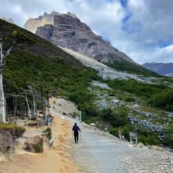 We woke up at 6 in the morning after super windy night. It felt sometimes like that there is a tornado outside 🤣 the weather in the morning was great and mountains were shining bright with first sunlight 😍 we prepared breakfast and then departed to Hotel Las Torres - the starting point of hike to Mirador Base de Las Torres. This hike is the most popular and most beautiful one in this national park. It is final stage of all the multi day hikes and popular place among day trippers. We drove around 50 minutes to the starting point (35km only) and stoped on the way in the Nordenskjold Viewpoint. At 8am we were ready and motivated to hike 😁 the weather looked great so we were looking forward to explore this national park even more. According to the map it is 4,5 hours to the viewpoint. After 2 hours we should reach Chileno Camp where we can eat and drink something. We were very fast, Flo overpassed most of the tourists and we arrived to the camp after 1,5 hours. We ate some snacks and continued to the viewpoint. Last 45 minutes were very rocky and steep but we managed to get to the lake in only 3,5 hours with breaks. The views were spectacular, there were not many people and the wind was crazy 😂 I had to wear all the jackets I had in my backpack in order to not freeze immediately 🙊 We ate sandwiches, took pictures and after 45 minutes we were ready to go back to Camp Chileno. We were really shocked how many people were going up, there was literally a traffic jam 😅😅 we saw also plenty of exhausted inexperienced hikers going up without food, drinks and with bad shoes 😢 I do not understand how people can underestimate the situation that much. We are talking here about 20km / 9 hours long hike not a walk in city park. Anyway we got around 14:15 to Chileno camp ate tasty cake, drink coffee and were ready for last 5km to the car. Overall the hike is not super easy but also not super difficult if you are experienced or as us you hiked a lot in last days 🤣 around 6 in the evening it started to rain again so we escaped to the common area of our campsite. Czytaj więcej