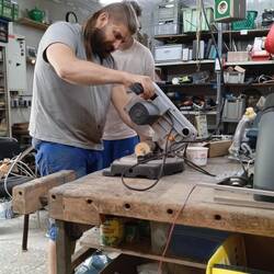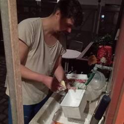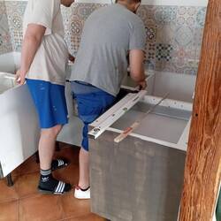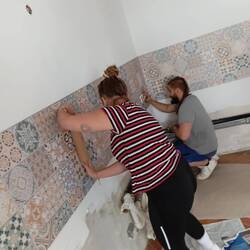 Mit den Mädels die letzten Malerarbeiten uns Till kümmert sich um die Arbeitsplatte