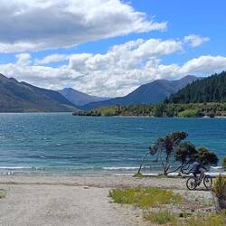 Ce matin après leur départ et après la pluie nous sommes partis avec les 3 filles (Indi, Ellie et Gaïa) faire une grande balade. Leur maison est très bien située et en 10 minutes nous sommes aux abords du lac. Les filles se sont baignées et on a fait 6 km. Ensuite après notre déjeuner on est partis avec Pablo faire une balade à vélo de 20 km le long du lac mais du côté opposé. On s'est régalés 😍 Le chemin était assez étroit mais facile à manœuvrer. C'était vraiment agréable avec des vues à couper le souffle. Et les couleurs de l'eau..wow!