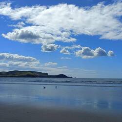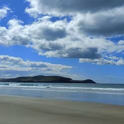 On est allés voir le FC à 5 minutes du nôtre et la prochaine fois on ira là-bas ! Il est situé à Waikawa. On prend la direction de Curio Bay. La route est goudronnée et très jolie. On se gare et des panneaux "chiens interdits" partout 😥 On laisse Gaia dans le van et on doit rentrer dans un camping pour accéder à la petite falaise. La vue est magnifique et on voit la plage de Curio au loin. On récupère le van et Gaia pour aller à la plage mais pas d'accès. Finalement on arrive à se garer et la panneau nous dit que les chiens sont autorisés à partir de là...ouf!! Gaia est aux anges! Le sable est fin et blanc comme de la farine. On se balade tranquillement. On est seuls et c'est calme! Je me baisse pour prendre une photos de deux mouettes et je vois un truc noir dans l'eau! Pablo regarde et pense que c'est un dauphin. En effet il surfait dans les vagues mais impossible de le prendre en vidéo. On prend la route de Slope Point (le point le plus au sud de la NZ) .La route est magnifique , vallonnée, avec des moutons et des vaches. Les étendues sont si vastes que l'on a l'impression qu'il n'y en a pas beaucoup 🤣