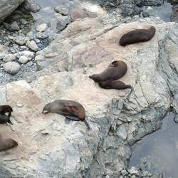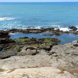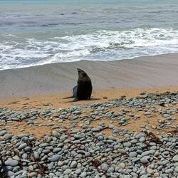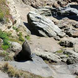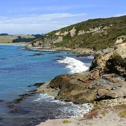 Avant la grande plage de Katiki, nous prenons à droite "Shag Point road". Nous allons tout au bout pour une "Promenade d'observation des otaries à fourrure" et pour un point de vue. Nous Czytaj więcej