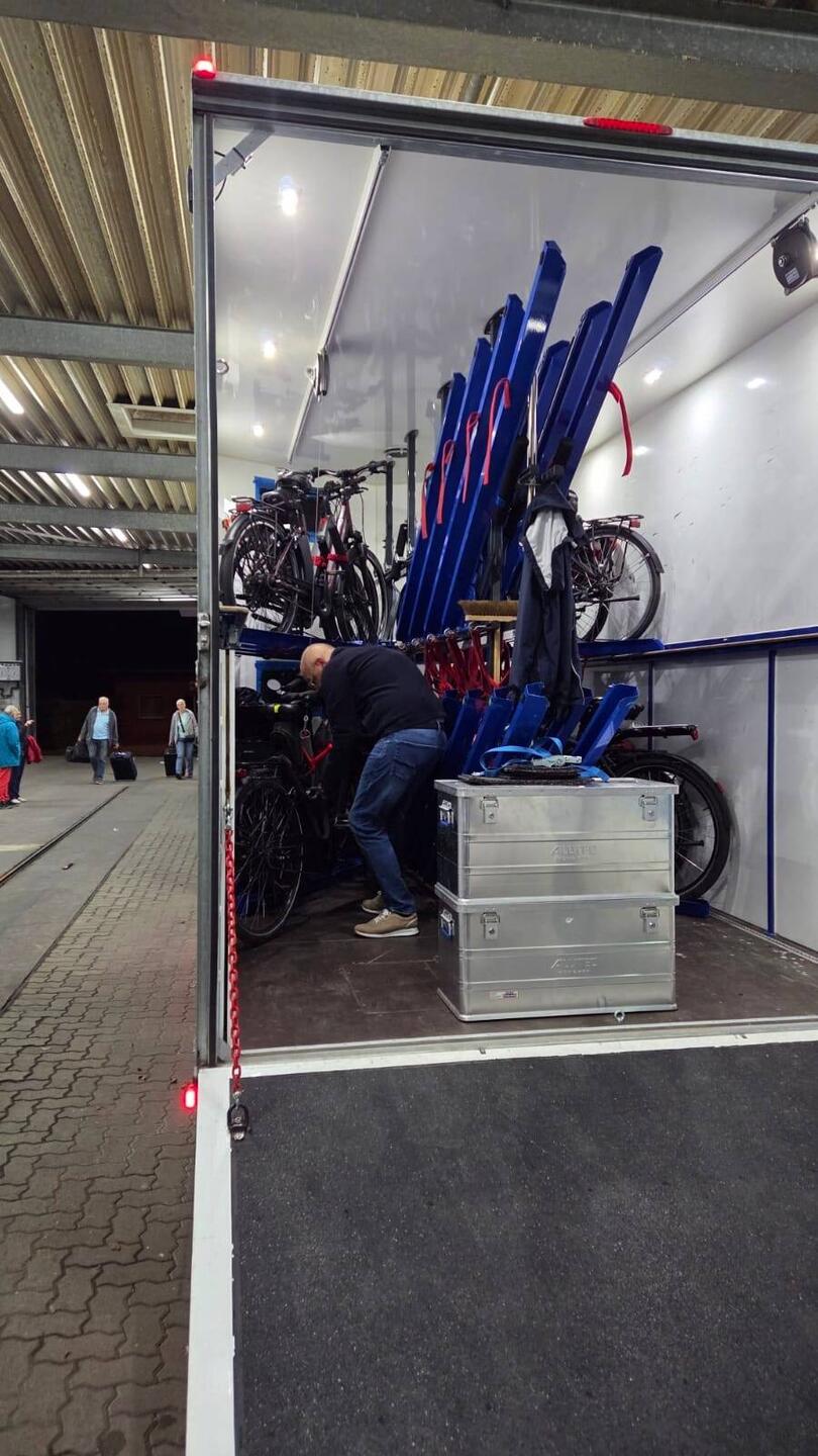 Abfahrt 4:25 Uhr Richtung Parkplatz Höffner, um mit Jutta und Butzi weiter nach Harsefeld zu fahren. Die Verladung der Räder und des Gepäcks führte Dirk ganz entspannt durch, so dass wir die ReiseLæs mere