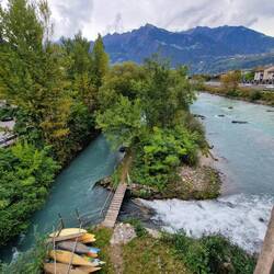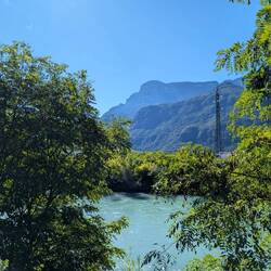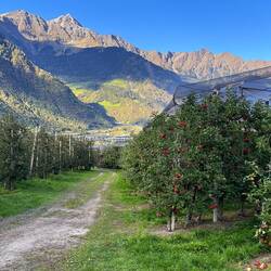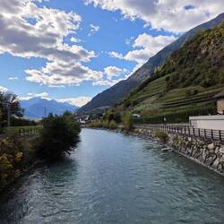 Heute hieß es: Hotelwechsel. Unser Gepäck fuhr Richtung Bozen und wir radelten zum Freitagsmarkt in Meran. Der war riesig. Dann radelten wir weiter Richtung Bozen. Die Fahrradtour führte entlangLæs mere
