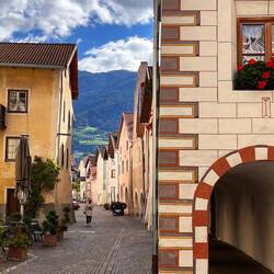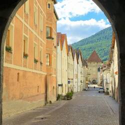 Nach dem Frühstück und einer kurzen Einführung für das Verhalten bei einer Radtour in der Gruppe fuhren wir mit unserem Bus nach Glurns, der kleinsten Stadt Italiens. Nach einer Führung durch dieLæs mere