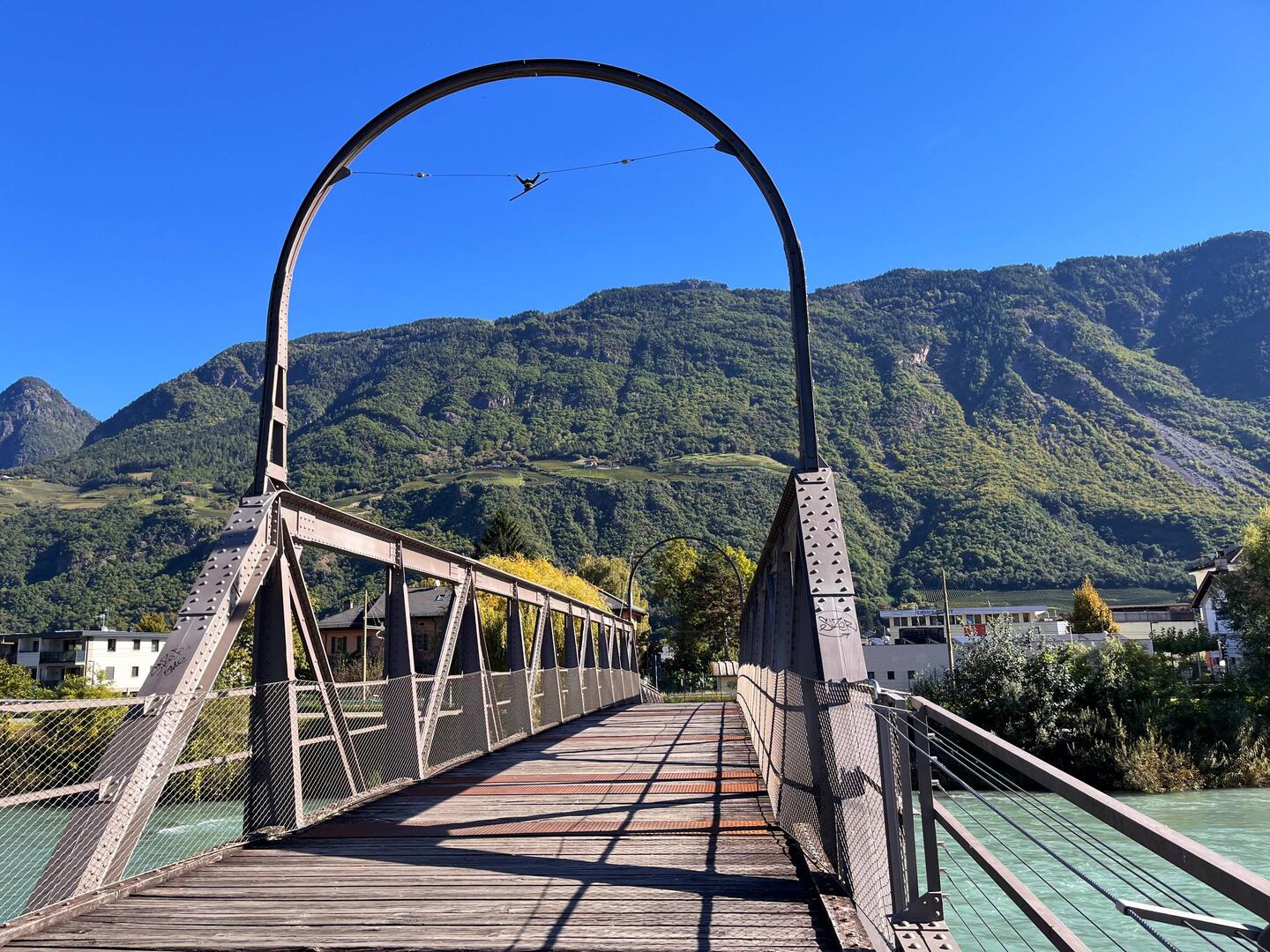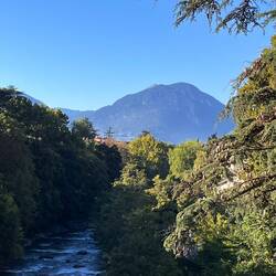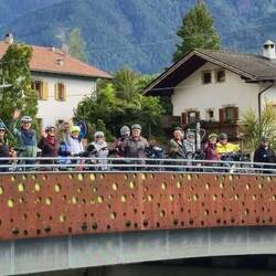 9:00 Abfahrt Richtung Meran mit dem Rad. Ein kurzer Stop in Maling, um die Reitbahn zu besichtigen, dann ging es weiter durch Meran über die Brücken der Passer mit direktem Blick auf dieLæs mere