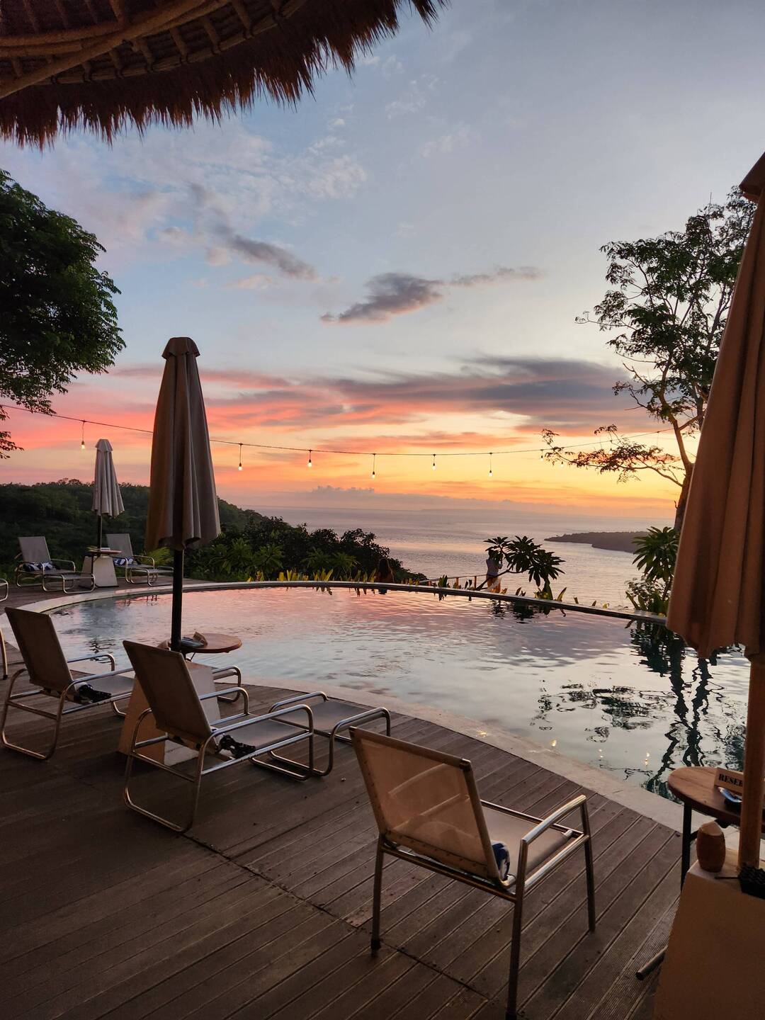 Gorgeous views of Keling King, broken beach, cliff, and crystal bay. The best sunset I have ever seen in my life at Amok Sunset bar. We stayed in a hotel in the jungle which was nice.