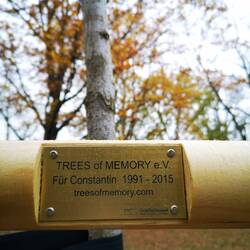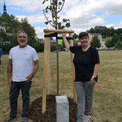 Dies war der erste Gemeinschaftsbaum, der für drei junge Menschen gepflanzt wurden, die sich das Leben genommen haben. Kevin ist der Sohn unserer Vereinsschatzmeisterin, Iris Pfister.