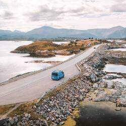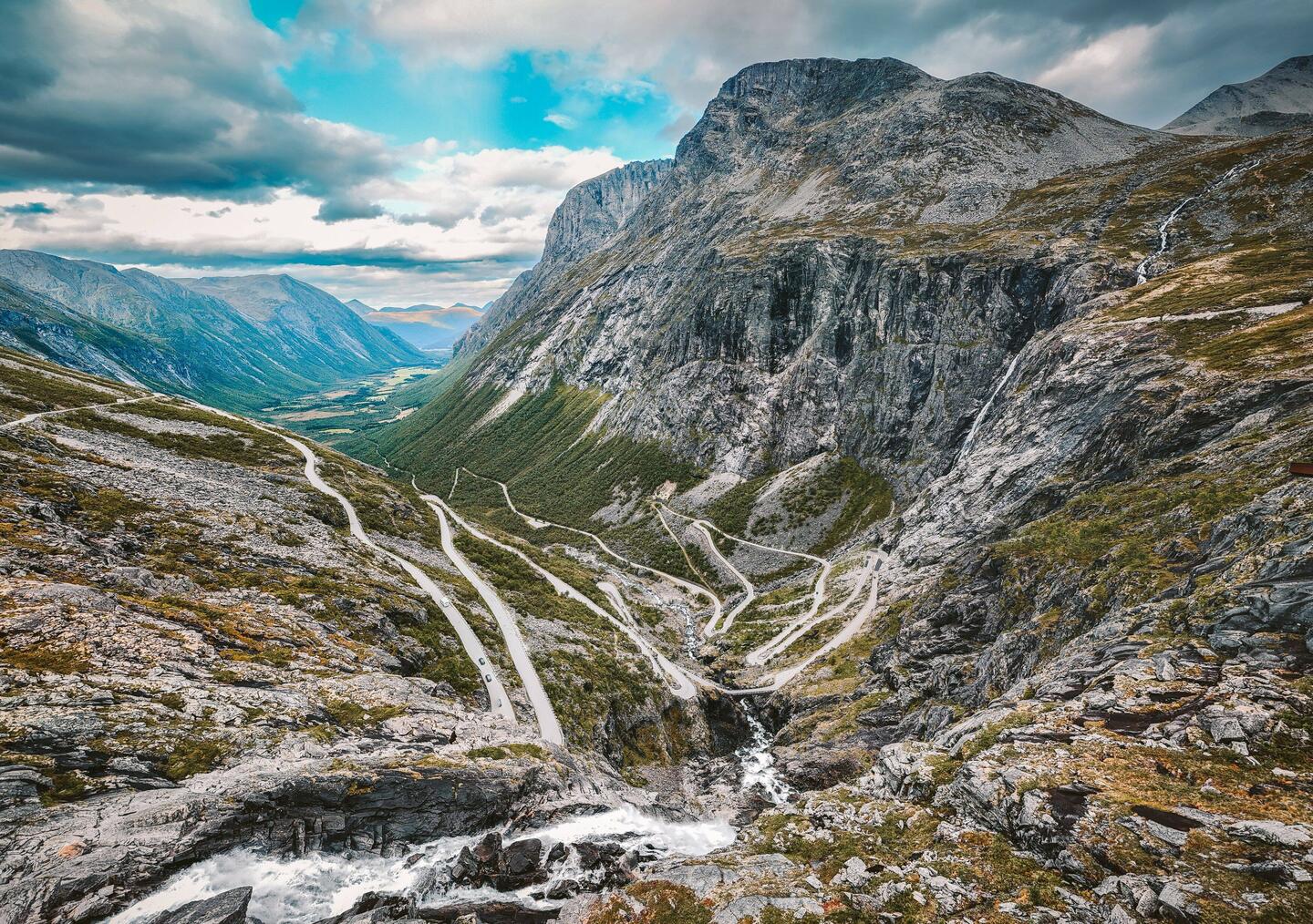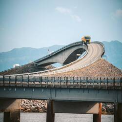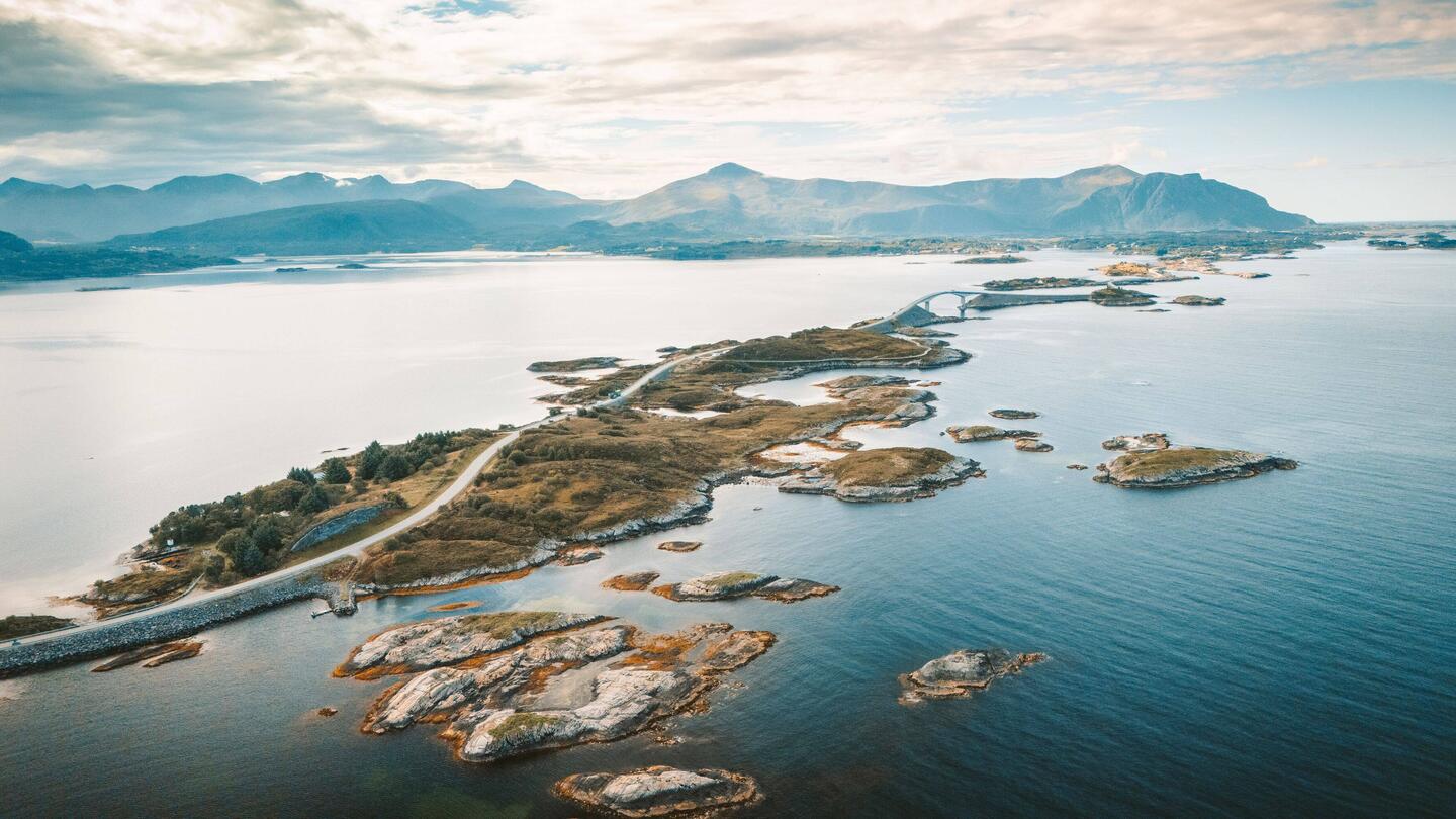 Die Atlantikstraße wird als die schönste Reise der Welt bezeichnet. Wie ein Meereswurm schlängelt sich die Straße mit ihren acht Brücken von Kårvåg auf Averøya nach Vevang auf dem Festland.