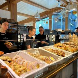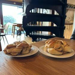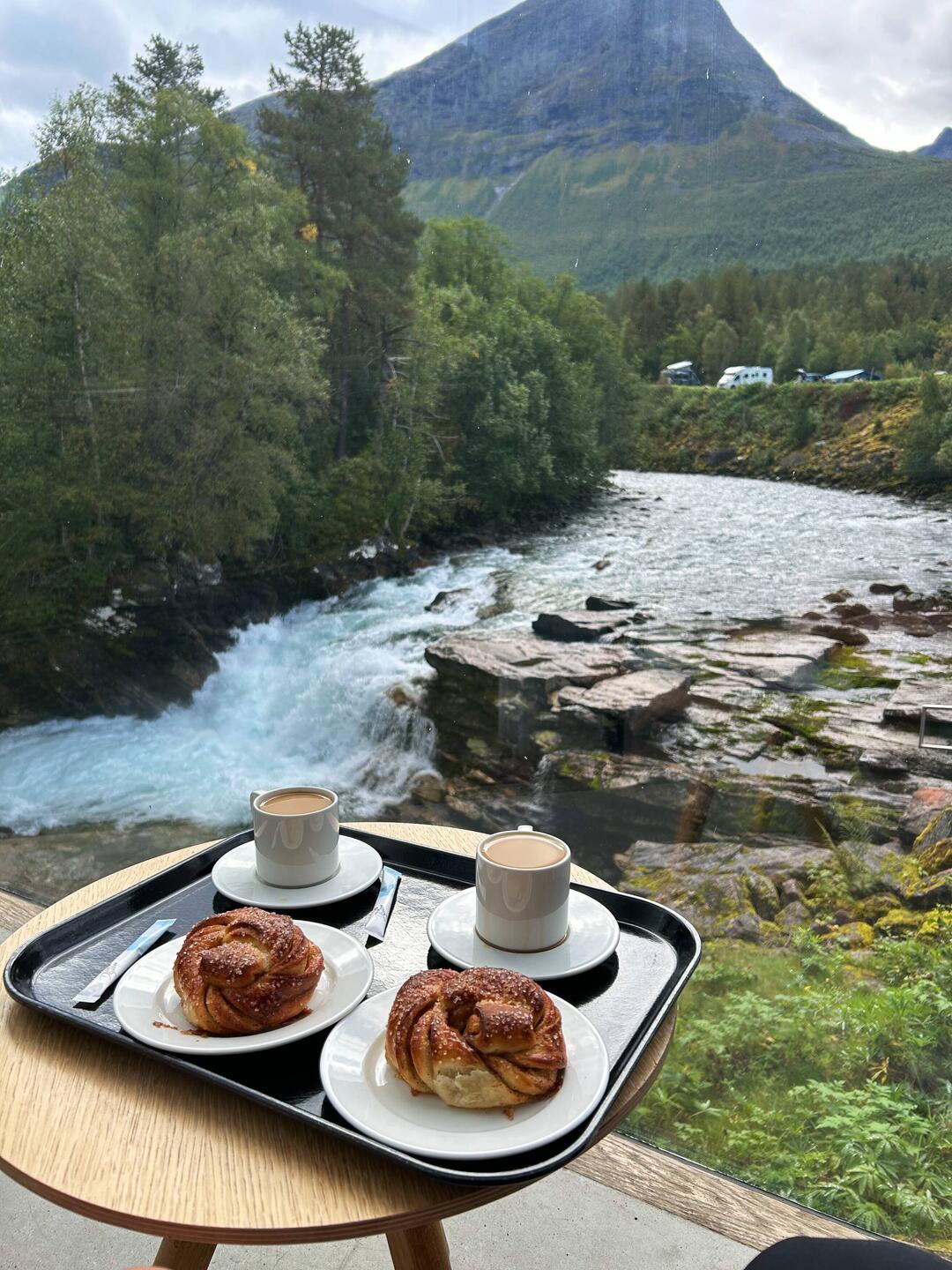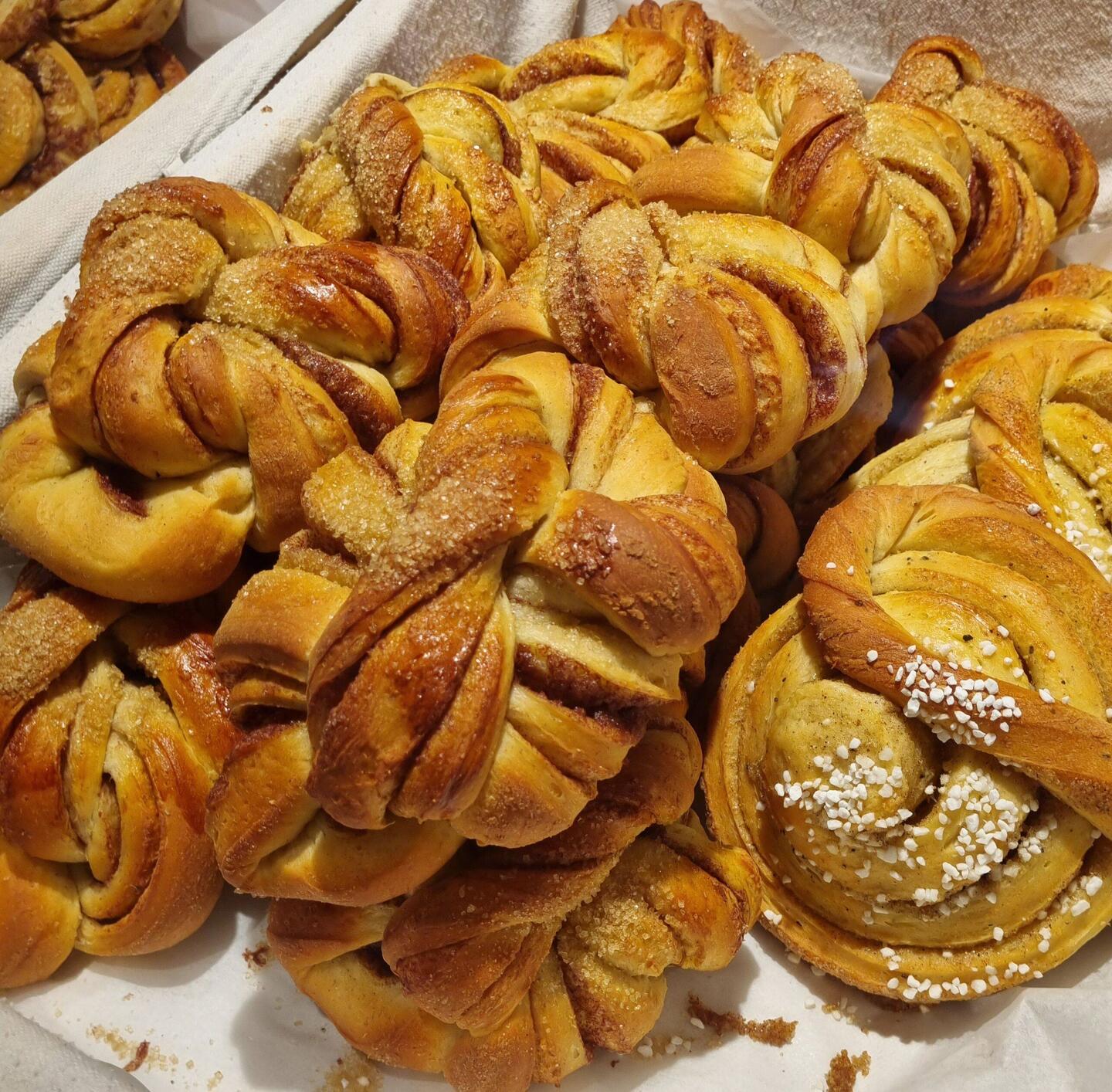 Schon beim Aussteigen lag der betörende Duft frisch gebackener Snurren, Knurren und Bollen in der Luft 😍. Er lockte uns direkt in die Bäckerei. Zum Glück noch vor den langen Reihen der Bustouristen konnten wir unsere 2 Kanelsnurren + Kaffee bestellen ☕🍩. Und ja – auch den Bustouristen sei es gegönnt, denn so ein Erlebnis sollte wirklich niemandem verwehrt bleiben. 🚌💛