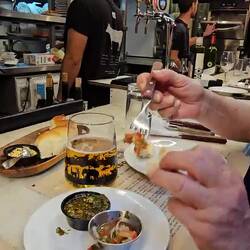 Σήμερα στις 12:30 το μεσημέρι είχαμε κλείσει σ το πριβέ εστιατόριο Fogon. Ουσιαστικά είναι ένα ανοιχτό μπάρμπεκιου για 10 άτομα με δύο σεφ. Το καλό είναι ότι έχει στην ευκαιρία να δοκιμάσεις όλες τις παραδοσιακές γεύσεις της αργεντινής, πρόκειται για 9 πιάτα. Το γεύμα διαρκεί 3 ώρες. Μαζί με τέσσερα κρασιά πληρώσαμε ανα άτομο 110 δολάρια. Το εστιατόριο είναι προτεινόμενο από τον οδηγό Michelin στα τοπ 2024, και επίσης μου το πρότεινε και ο νίκος που γνώρισα στη χιλή όταν ήμουνα στην έρημο. Προφανώς και δεν φάγαμε καθόλου πρωινό. Πέρα από λίγο φρούτο... Για να συμπληρώσουμε τη χθεσινοβραδινή μπανάνα!! Μας υποδέχτηκαν με σαμπάνια και περιμέναμε σε αυτόν τον χώρο με τις καταπληκτικές φωτογραφίες από την παταγονία. Ξετρελάθηκα με τις φωτογραφίες και έκανα follow τον φωτογράφο στο instagram. Εντελώς τυχαία είχαμε τις καλύτερες θέσεις στο κέντρο ακριβώς από την ψησταριά. Στα αριστερά μου ένα ηλικιωμένο ζευγάρι αμερικανών από τη βοστώνη. Στα δεξιά της μαμάς, μία οικογένεια από τη σουηδία, ο μπαμπάς σουηδός και αύριο γιορτάζει τα 60 του χρόνια, η μαμά από τη βουλγαρία, η κόρη και ο αρραβωνιαστικός της. Τέρμα αριστερά, ένα ζευγάρι από τη Γουατεμάλα γιορτάζει την τρίτη του επέτειο γάμου. Ήταν ένα social eating. Η καλύτερη φίλη των αμερικανών ονομάζεται κάρμεν, και είναι δεύτερης γενιάς ελληνίδα που μένει στη βοστώνη. Η μαμά της είναι από ένα νησί και ο αμερικανός δεν μπορούσε να θυμηθεί το όνομα του νησιού. Της έστειλε λοιπόν μήνυμα.... Και η απάντηση είναι σοκαριστική γιατί η μαμά της είναι από το πλωμάρι!! Τελικά γνωστοι δεν βγήκαμε αλλά πραγματικά κάθε πότε συμβαίνει κάτι τέτοιο?!
