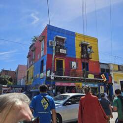 Έκλεισα μέσω internet ένα walking tουρ για τις 11:00 το πρωί στην περιοχή La Boca, με 10€ το άτομο. Όταν φτάσαμε μας πέτυχε ο ξεναγός Λούκας από το phoenix της αμερικής. Έχει μετακομίσει και μένει στο buenos aires εδώ και 15 χρόνια. Ήταν μία καταπληκτική ξενάγηση στο προάστιο αυτό το οποίο είναι ιστορικό για τα χρώματα του αλλά και για το στάδιο boca juniors τον φανατισμό με το ποδόσφαιρο και τον μαραντόνα. La Boca σημαίνει στόμα. Και έτσι λένε την περιοχή επειδή ο ποταμός εδώ κάνει μία εσοχή σαν στόμα. Ήταν το μέρος όπου όλα τα καράβια ξεφόρτωναν ή φόρτωναν πράγματα για το buenos aires. Μία περιοχή εργατικής τάξης.