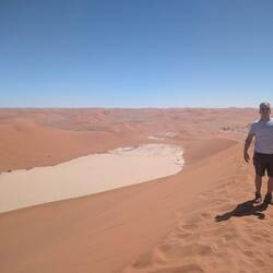 Sossusvlei. Für mich einer der beeindruckendsten Orte der Erde. Einige der höchsten Sanddünen der Welt, dazwischen das Deadvlei mit seinen Akazien-Gerippen. Die Wanderung auf die 350m hohe Big Daddy Dune hatte es bei über 35 Grad in sich, lohnt sich aber auch beim dritten Mal.Read more