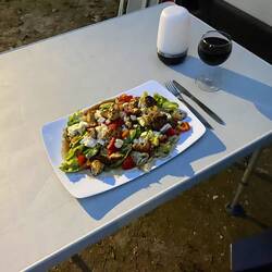 Hier angekommen. Den richtigen Platz ausgesucht. Ich freue mich auf einen entspannten Abend und werde morgen mit dem Rad die Gegend erkunden.