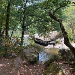 Hier ist der nächste vorgebuchte Stellplatz. Unterwegs habe ich einen Abstecher zu den Teufelsfelsen (Les Roches du Diable) gemacht. Imposante kleine und grosse Felsen liegen wie vom Teufel hingeworfen im Wasser und umliegenden Wald. Viele Menschen kommen hierher zum Wandern, aber auch zum Baden und Verweilen.