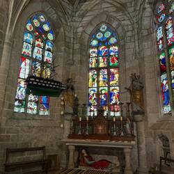 In La Faouët gibt es quasi nichts zu sehen ausser einer Markthalle. Etwas ausserhalb die Chapelle Sainte-Barbe. Sie wurde in den Fels gebaut und man muss eine lange steinerne Trepoe hinabgehen. Die Kirchenglocke steht für sich alleine und jeder dsrf mal am Seil ziehen. Der Legende nach hat, wer dreimal hintereinander läutet, nie wieder Angst vor Blitz und Donner …Read more