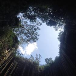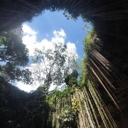 Ein Cenote ist eine Karststeinhöhle, die oft durch Einsturz der Höhlendecke dolinenartig als großes Kalksteinloch vorliegt, das mit Süßwasser gefüllt ist und als Brunnen dienen kann.