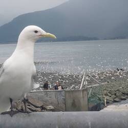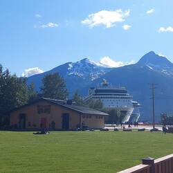 Beim Check In (immer noch No 2 auf der Warteliste) wurde uns mitgeteilt dass heute in Skagway der Wind sooo pfeift, dass die Fähre ev nicht anlegen kann und wieder nach Haines zurück fahren muss.もっと詳しく