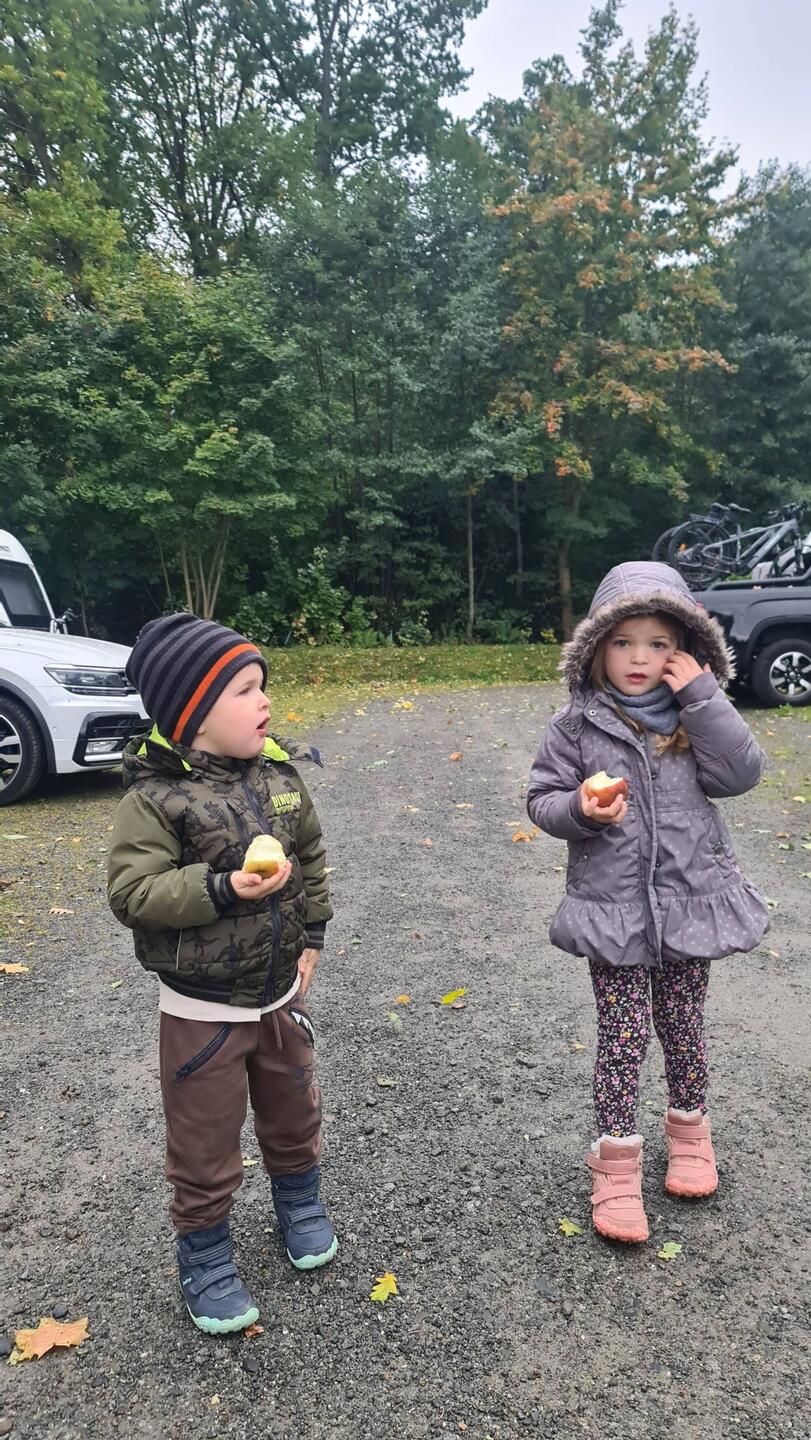 Felix & Juna sind um 7Uhr in die Natur gewandert und haben neue Stöcker für Anja Magrame-Projekt gesammelt.