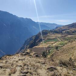 In order to explore the Cordillera Blanca mountain range, we didn't choose the more obvious hub Huaraz, but based ourselves in Caraz nearby. The village is nice, and there was a 4500-year-old ruinLæs mere