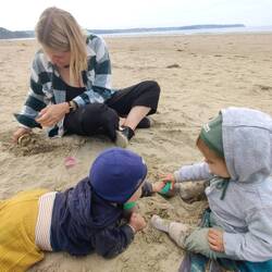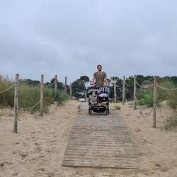 Am letzten Tag in Spanien, an dem mal wieder viel Regen vorausgesagt war, spazierten wir von Campingplatz an den kliffs entlang zum Strand herunter. Von dort geht ein Boardwalk zur Promenade. AnLue lisää