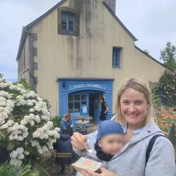 Direkt danach ging es von der Halbinsel wieder runter - durch schöne Dörfer und die Hafenstadt Dournanez, wo uns in den engen Gassen von einem parkenden Auto noch der Spiegel angefahren wurde, zumLue lisää