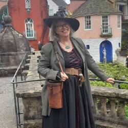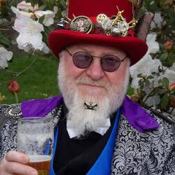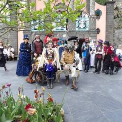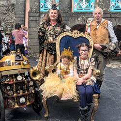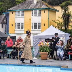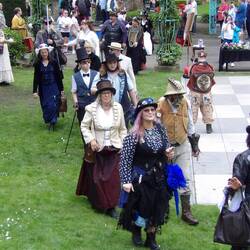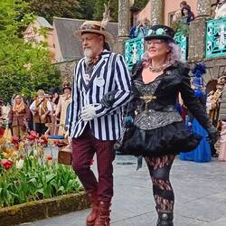 John entered the fashion show and won! So he is now officially Portmeirion steampunk King!