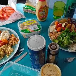 Had a first for us both today. We tried a 'raclette', which was a bit like a warmed ploughman's without the bread and pickles but potatoes instead. Wine included. They brought the food to the vanLue lisää
