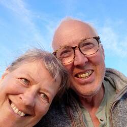 Last night it rained ... a lot! I had a lie in enjoying the sound of rain on the van roof and watching raindrops, plus Wordle-ing of course. John sat in his chair and read.