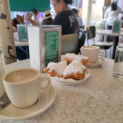 Walked down Decatur Street towards Cafe du Monde and Jackson Square. We did the loop around the park and took pictures. The we exited the backway and went down one of the streets with the artists.Read more