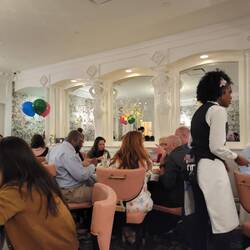 We are in the Washington dining room, as opposed to the Lincoln. Our table was seating for 8 or 10, and there were 4 of us. Another pair of sisters, Chastity and Carrie. They are from Tulsa, OklahomaRead more
