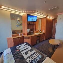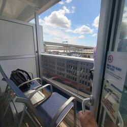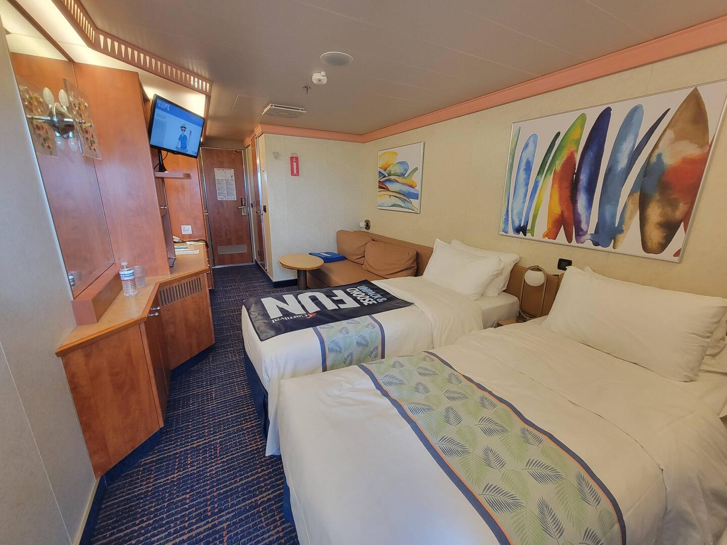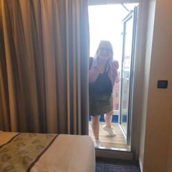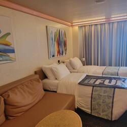 The cabin was ready and and we grabbed our Sail & Sign cards. I'm officially Gold status. The cabin is small, but it has a couch and a balcony!