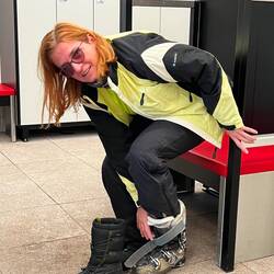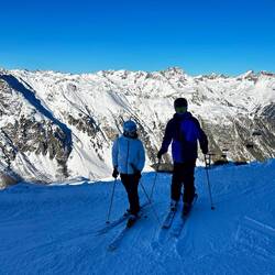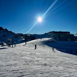 Michi und Gabriela reisen nach einer Nacht in Innsbruck auch noch Vormittags an und können am Nachmittag nach den ersten Abfahrten die anderen schon auf ein Getränk in Paznaun Thaya treffen.