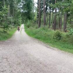 Wir frühstücken beim örtlichen Bäcker, bevor wir nach Süden losfahren. Wir durchqueren einige kleinere und größere Waldstücke, sowie am Moorradweg das Haspelmoor.