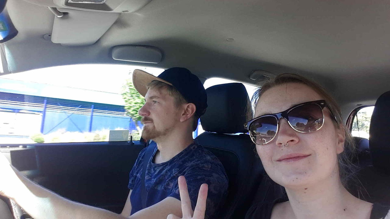 Hier sehen wir zwar recht entspannt aus - aber die erste Linksverkehrfahrt war für uns beide aufregend ;)