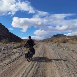 Die letzten 13 km bis zur Straße führen dann in einem Flussbett entlang. Dieses umgeht zwar jegliche Steigung, allerdings sind wir mit Sand- und Kiesgruben konfrontiert. Ab einem Punkt habe ich einfach zu viel und schiebe nur noch, bis wir auf etwas festerem Untergrund kommen.