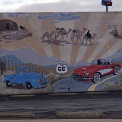 Ein weiteres Mal geht es bergauf, dann stehen wir in Kingman, ebenfalls geprägt durch die Route 66 mit zahlreichen Motels entlang der Straße.