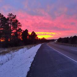 Wir erleben einen herrlichen Sonnenuntergang und kommen kurz nach Dunkelheit bei unserem Motel an. Hier liegt nun auch ein wenig Schnee und Eis auf der Straße, weshalb wir nicht allzu schnell fahren.