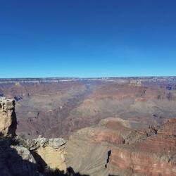 Dann sehen wir das erste Schild, das uns den Weg zum Mather Point, einer der bekanntesten Aussichtspunkte auf den Grand Canyon, weist. Diesem folgen wir bis wir schon den oberen Rand des Canyon sehen können. Dann ist er plötzlich da! Was für ein Anblick! Wir haben zwsr schon viele Bilder vom Canyon gesehen, aber das Original übertrifft nochmal jegliche Erwartungen. Einfach atemberaubend!