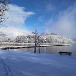 Was für eine Kälte! Obwohl nur noch selten kleine Schneefelder zu sehen waren, wurde dieser Tag doch sehr kalt. Selbst der See war leicht zugefroren.