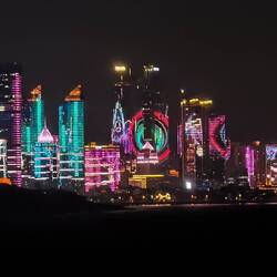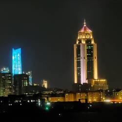 Die Fähre verlässt erst den Hafen, als es schon länger dunkel ist und so können wir einen Blick zurück auf die beeindruckende aber auch ziemlich übertriebene Skyline werden, die in allen möglichen Farben leuchtet und blickt.Read more